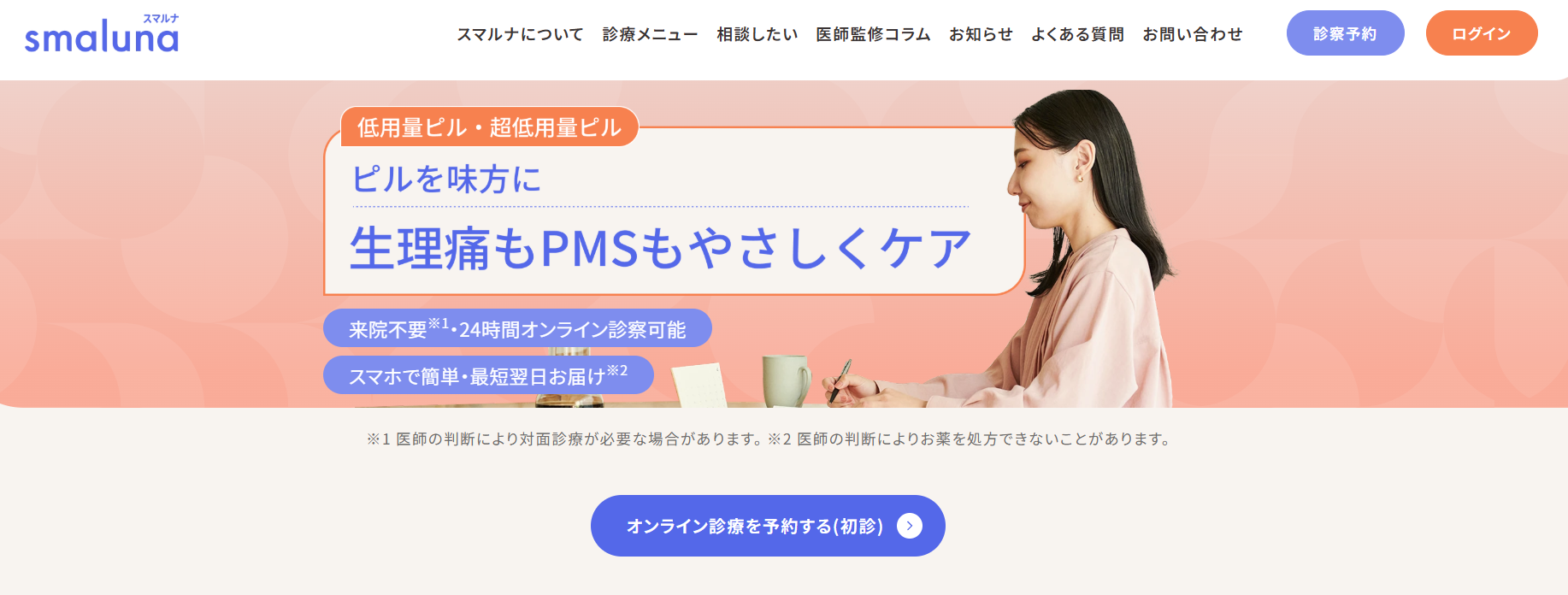 スマルナは、専用アプリを通じて医師との診察からピルの処方、配送までを一括で完結できるオンライン診療サービスで、特に「手軽さ」と「継続のしやすさ」に強みを持っています。アプリベースで管理できるため、診察履歴や服用スケジュールを一元管理できる点が特徴で、ピルを初めて利用する方や、飲み忘れが不安な方にも適した設計になっています。