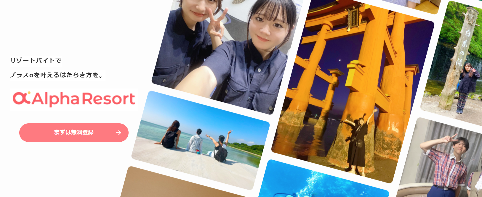 また、未経験歓迎の求人も多く、初めてのリゾートバイトでも応募しやすい点は大きな魅力です。ただし、ダイブと比較するとサポートはやや事務的な側面もあり、「手厚く寄り添ってほしい」という方よりも、「自分である程度選びたい」という方に向いています。